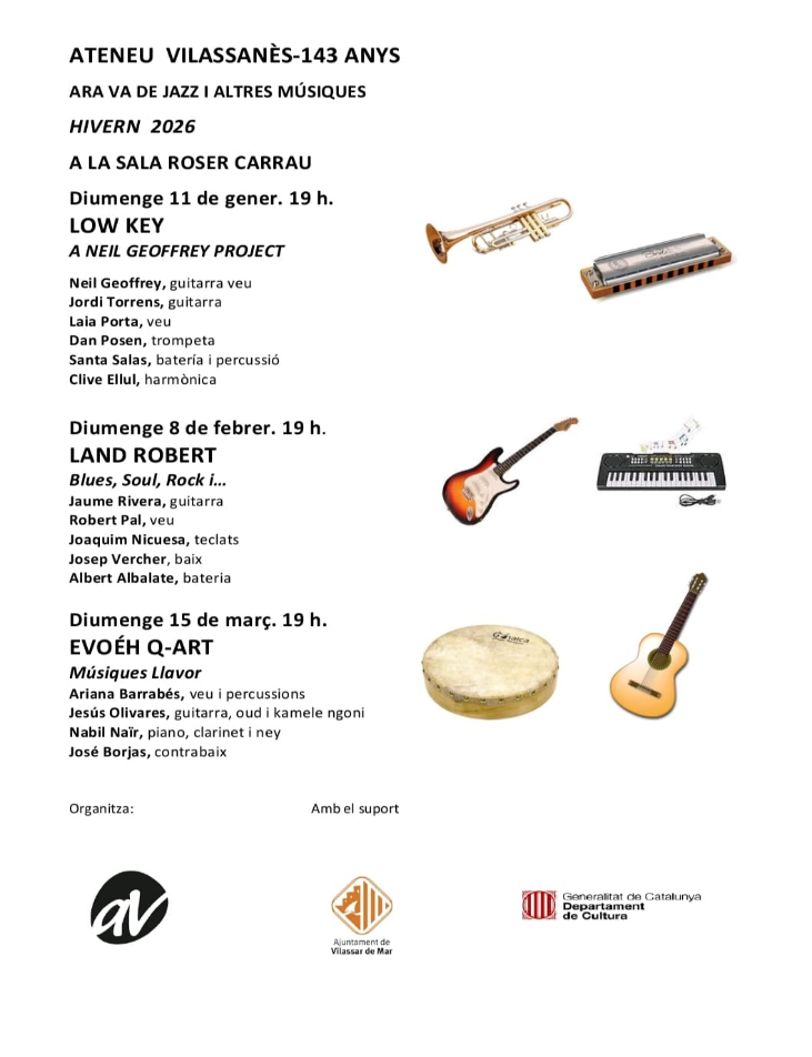 Mensualment ,en diumenge a les 19 h. i amb una durada d uns 90 minuts es fan actuacions musicals variades com Pop, Fusió, Jazz, Cantautors, etc.